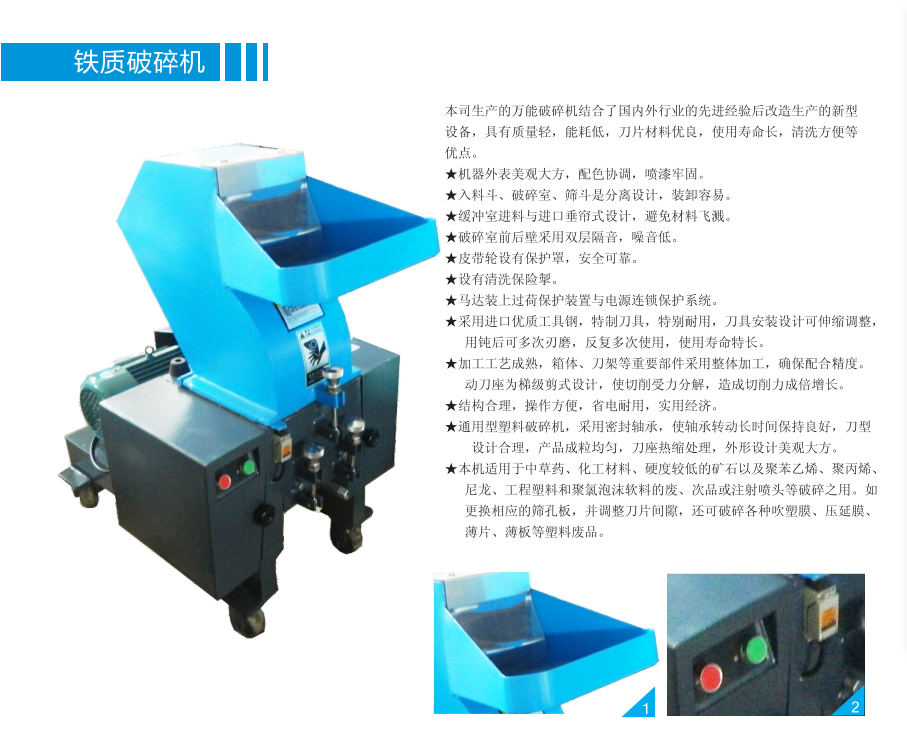 E-180F鐵質(zhì)破碎機采用進(jìn)口優(yōu)質(zhì)工具鋼,耐用