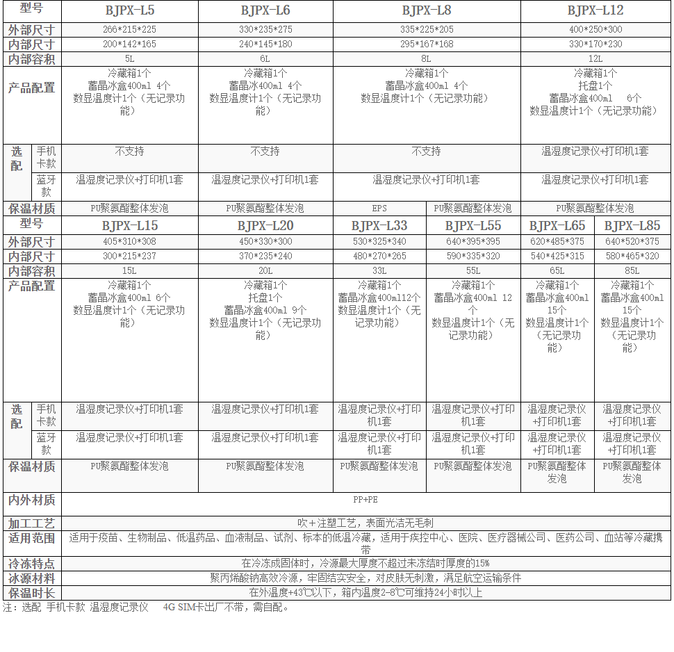 冷藏箱1個,托盤1個,蓄晶冰盒400ml . 6個數(shù)顯溫度計1個(無記錄功能)